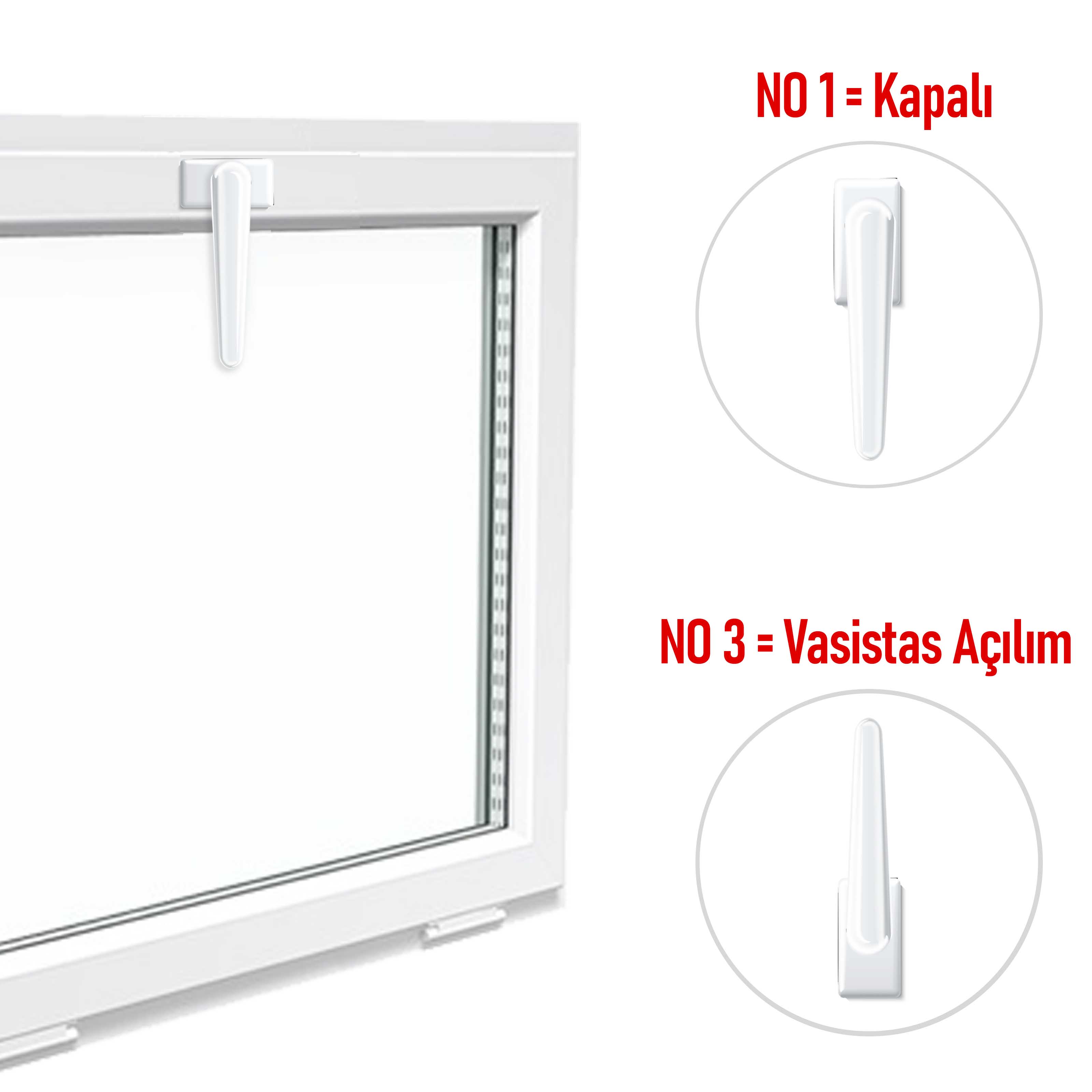 Pencere Kanadının Açılımı: Tek açılım PVC pencere de kol 1 numaralı durumdayken 45 derece yukarı kaldırılıp kanat çekilerek 2 numaralı hale getirilir ve açılımı sağlanır.